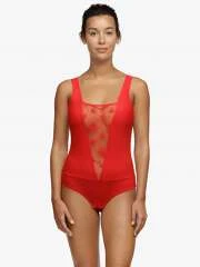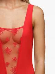 Body en maille et tulle brodé rouge