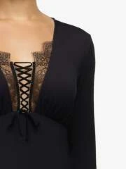 Haut de pyjama noir en modal et fine dentelle pour un style féminin.