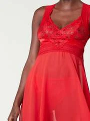 Nuisette séduction en voile rouge.