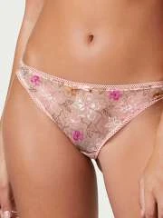 – Lingerie en tulle abricot brodé de motifs floraux multicolores
