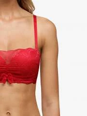 Ce soutien-gorge coque aux bretelles amovibles rouge en dentelle s’adapte à toutes vos envies et peut être porté sans bretelles pour des épaules dégagées ou bretelles croisées pour s’adapter à tous vos tops. Il remonte vos seins et crée un décolleté pulpeux grâce à sa coque rembourrée. On craque pour son superbe décolleté droit en dentelle, qu’on pourra laisser dépasser d’un pull décolleté en V.ruban tulle+nœud qui soulignent la poitrine