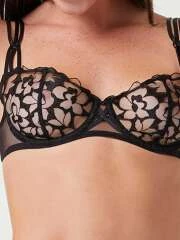 Soutien-gorge corbeille en tulle brodé noir