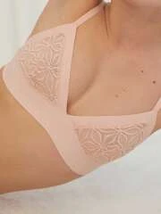 Soutien-gorge sans armature en dentelle et maille rose pâle